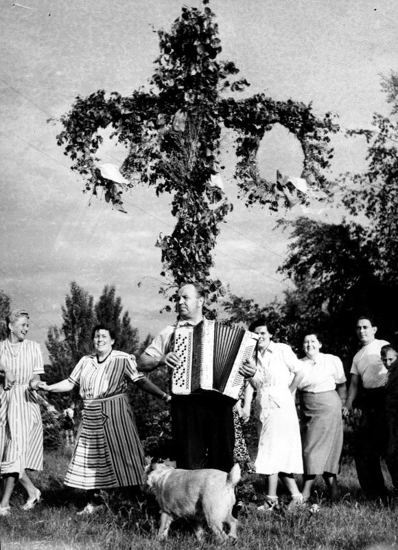 midsommarfirande, midsommardans, midsommar, höllviken, män, midsommarstång, dragspelare, kvinna, kvinnor, hans håkansson, man