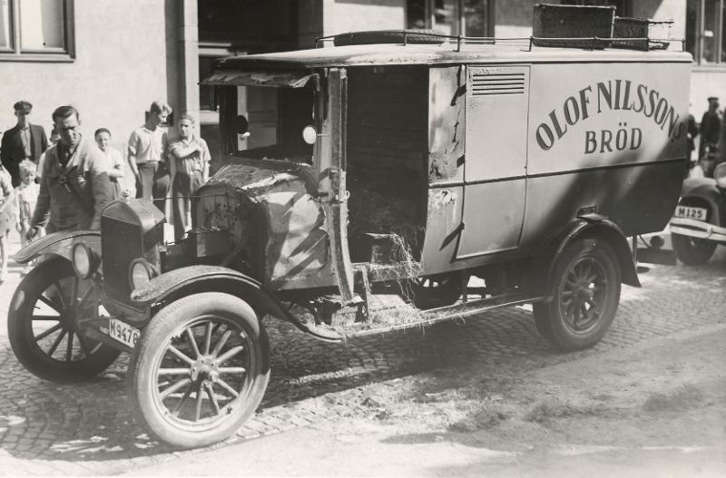 olycka, bil, bagerier, gata, bostadshus, bageri, bilolycka, brödbilar, åskådare, lastbilar, olyckor, bilar, brödbil, veteranbil, bilbrand, gator, nilssons bageri, bilbränder, bilolyckor, södra promenaden, lastbil, veteranbilar