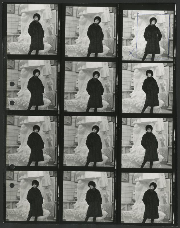 • Kontaktkarta. Kvinna i pälskappa och pälsmössa. Tagningar för Wigens AB i Tranås.