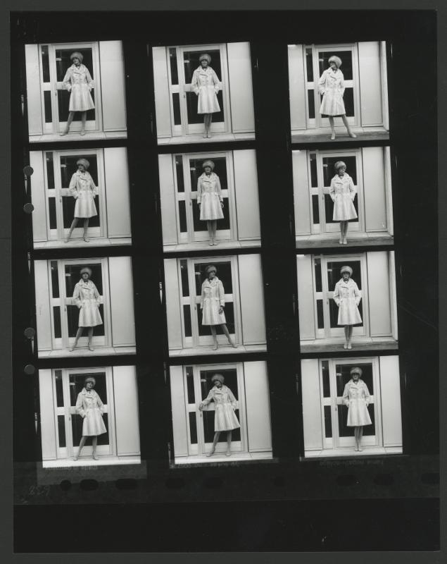 Kontaktkarta. Kvinna i pälskappa och pälsmössa.