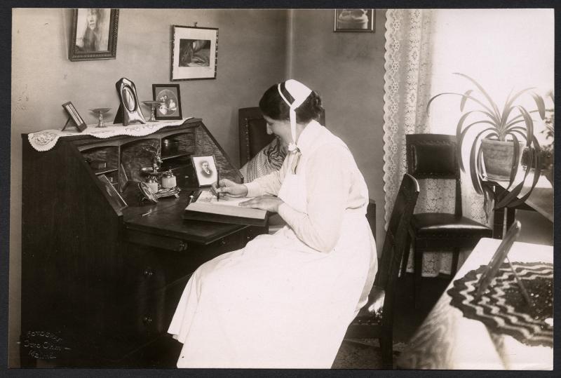 Kvinnoporträtt, sjukvårdspersonal.Okänt årtal.