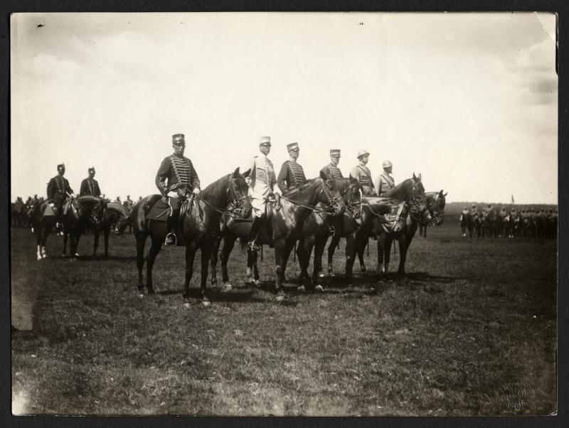 Inbjudna officerare vid skånska Dragonregementets 250 års jubileum.Okänt årtal.