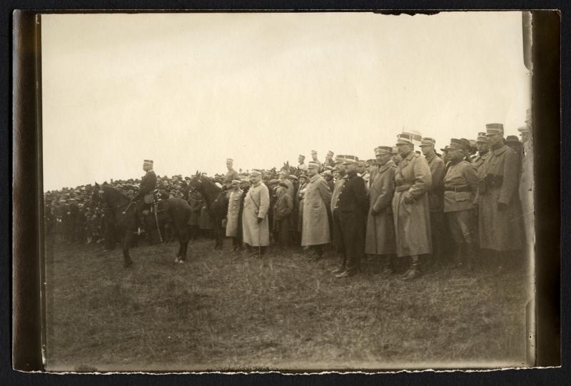 General Möreke med inbjudna officerare åser paraden.Okänt årtal.