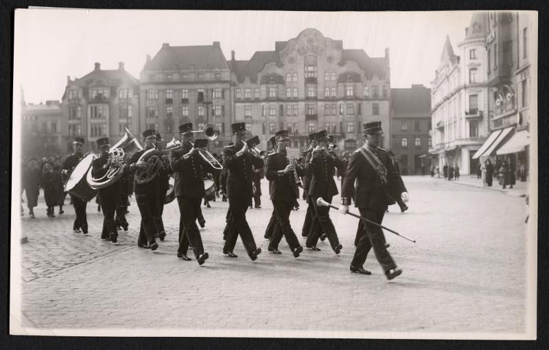 • Försvarsmöte i Malmö. Södra skåningarnas musikkår, den 19 april 1936.