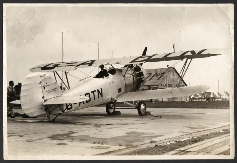 En engelsk Hawker Hart, G-ARTN, anländer till Bulltofta från England. Planet är på väg till F5 för demonstration inför Svenska Fv?. Tre exemplar inköptes av F.V.? från England 1934 och fick beteckningen B4, den 29 juni 1932. B4A, 21 exemplar byggdes på 11C vid CUM Malmslätt 1936. B4A, 13 exemplar byggdes på 11C vid ASJA Linköping 1937. B4A, 3 exemplar byggdes på 11C vid Götaverken Gog 1937.