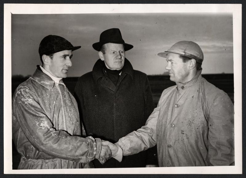 Vinstrikast i Sverige. Årets championkusk korades vid säsongens sista löpningar på Jägersro på söndagen.Bilden visar i mitten Sveriges vinstrikaste travhästägare, godsägare Leonard Petersson, Brodda stuteri, med årets championkusk Filip Norén t.h. som gratuleras till segern av svåraste konkurrenten Ove Nilsson.