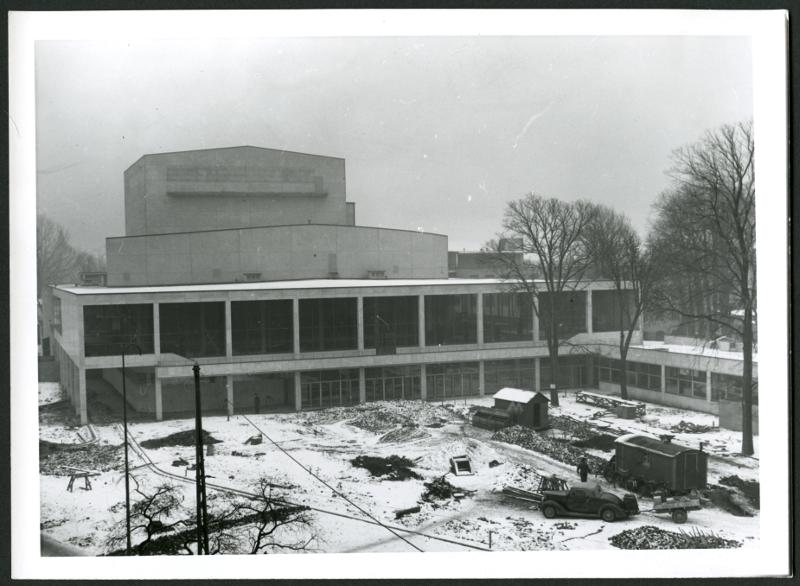Europas modernaste teater.Malmö nya stadsteater står nu inför sin fullbordan.- Bilden visar teaterns exteriör sedd från Fersens väg.