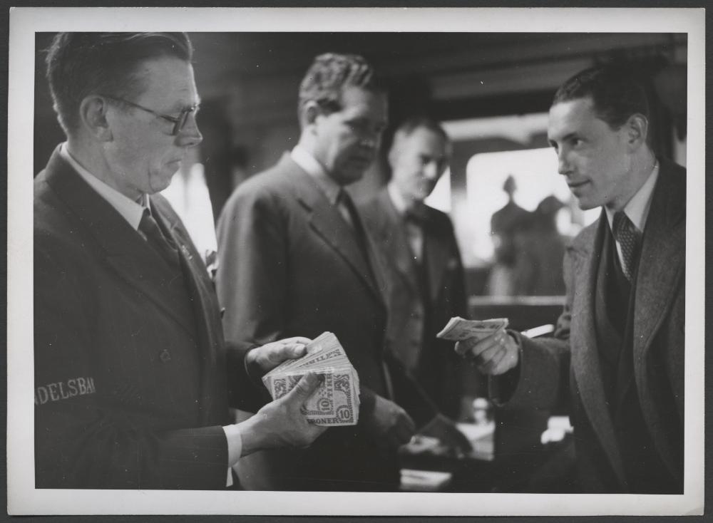 • Danska flyktingarna reser hem. Ombord på färjan var penningutväxling ordnad.