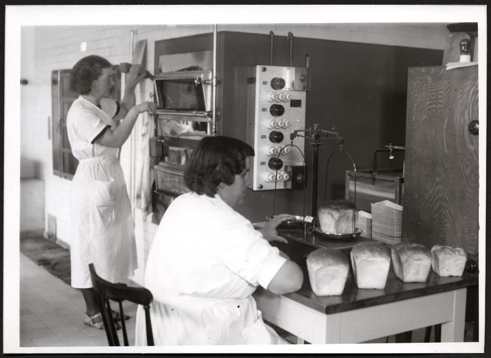 Bättre bröd, Svalövs paroll trots kristid. Interiör från bagerilaboratoriet i Svalöv, där metoderna att av potatismjöl framskapa ersättningar för bageri fett för närvarande prövas för livsmedelskommissionens räkning.