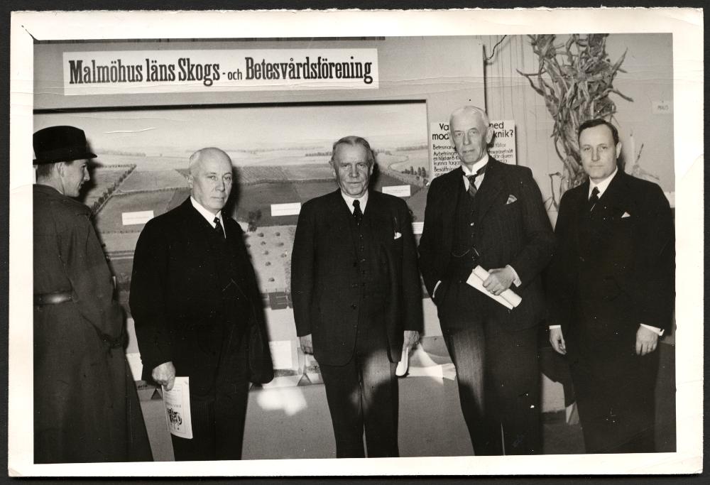 Riksfröutställningen i Malmö. Fr.v.: greve Philip Bonde, f. landshövdingen friherre Fredr. Ramel, professor L. Forsberg och jordbrukskonsulent Linder Aronsson.