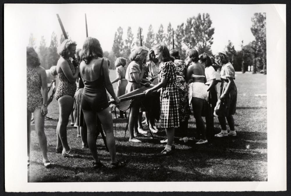 • Värntjänst för skolflickor, vid kommunala flickskolan i Malmö har idag värntjänstövningarna avslutats, omkring 300 elever har genomgått dessa övningar, som bl.a. omfattat orientering, lägertjänst, livräddning, sjukvård m.m. bilden visar en grupp deltagare vid tillämpningsövningar i sjukvård.