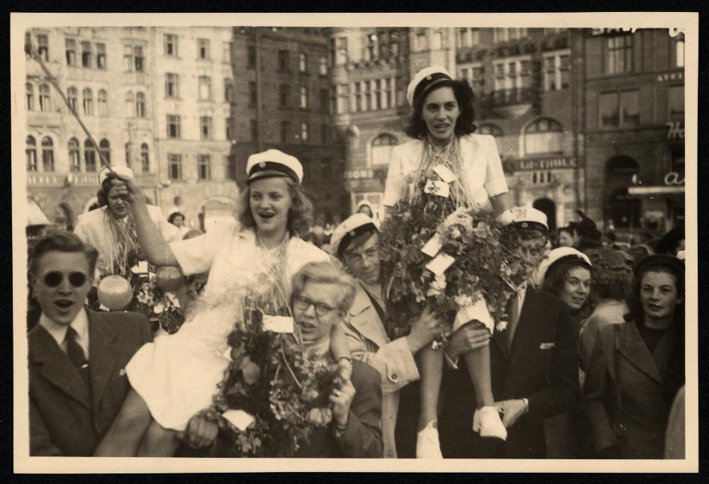 Studenter på Stortorget i Malmö, "Examen".Okänt år.