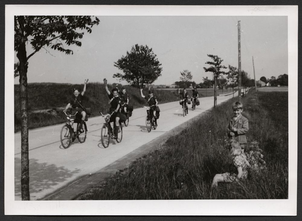 Pingstfirande i midsommarväder har lockat till skogsbesök i stor utsträckning. Bilden visar en patrull scouter glatt förväntansfulla styra kosan till Bökeberg.