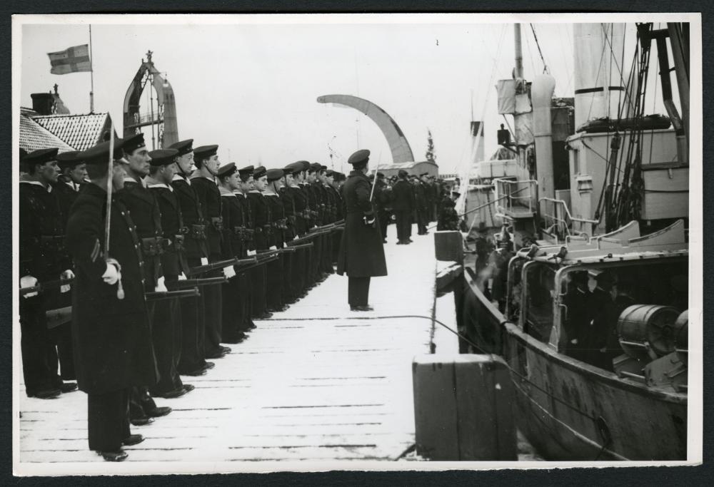 • Tyska besättningen från Trelleborg. Ett tyskt örlogsfartyg hämtade på tisdagen den vid Böste havererade besättningen samt deras omkomna kamrater. Under militära hyllningar fördes kistorna ombord.