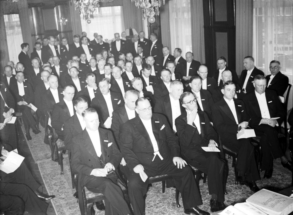 • Inomhusbild som visar en samling frackklädda åhörare.
