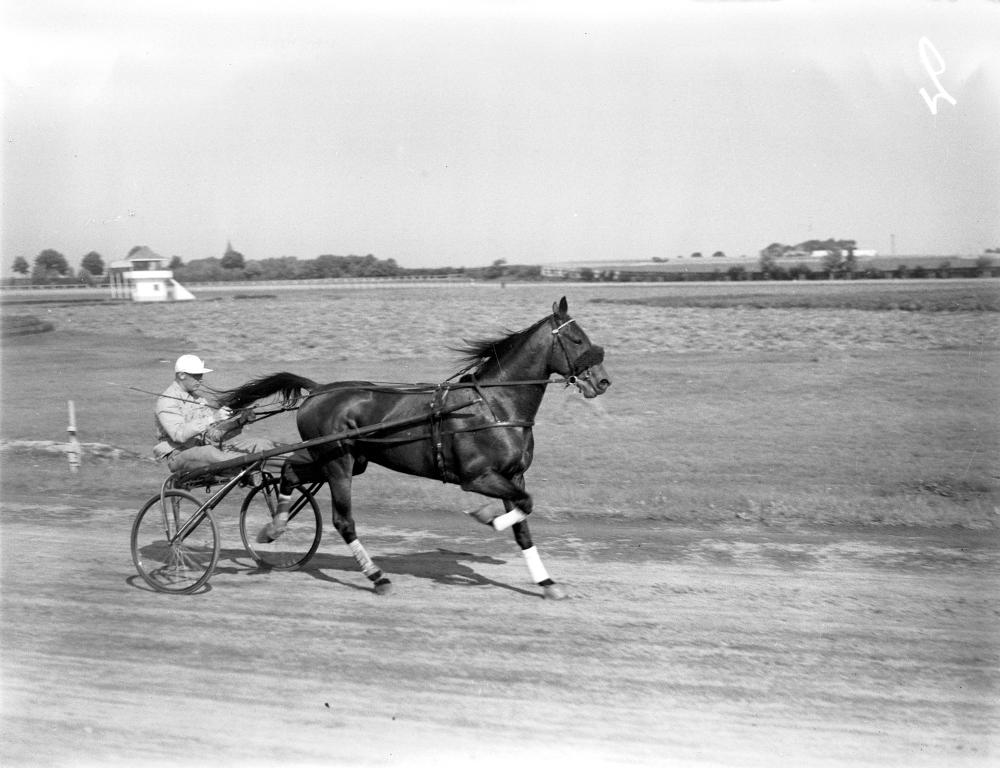 • Utomhusbild som visar ett travekipage under ett lopp.