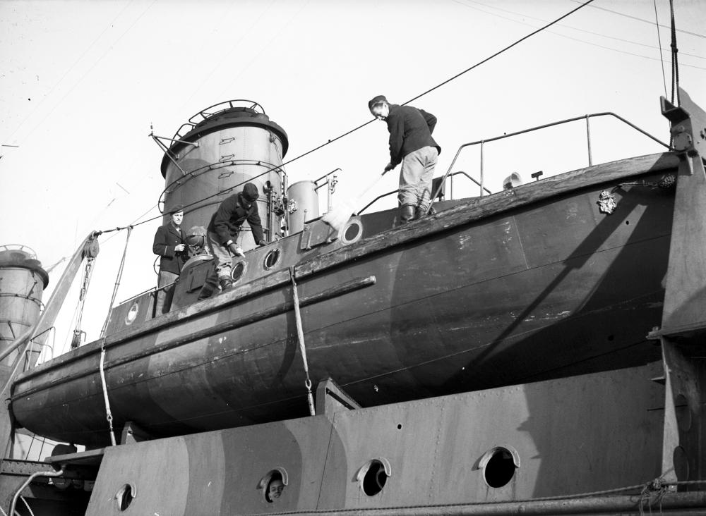• Utomhusbild som visar några män som arbetar på en livbåt.