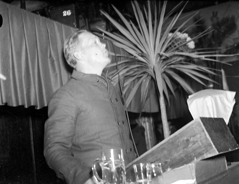 • Inomhusbild som visar en man som håller tal. Bilden är tagen i Spanien (kontingenten?).