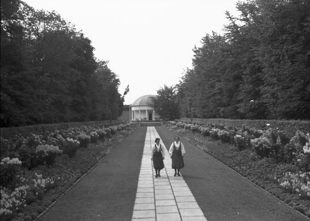 • Margaretapaviljongen. Två kvinnor på promenad.