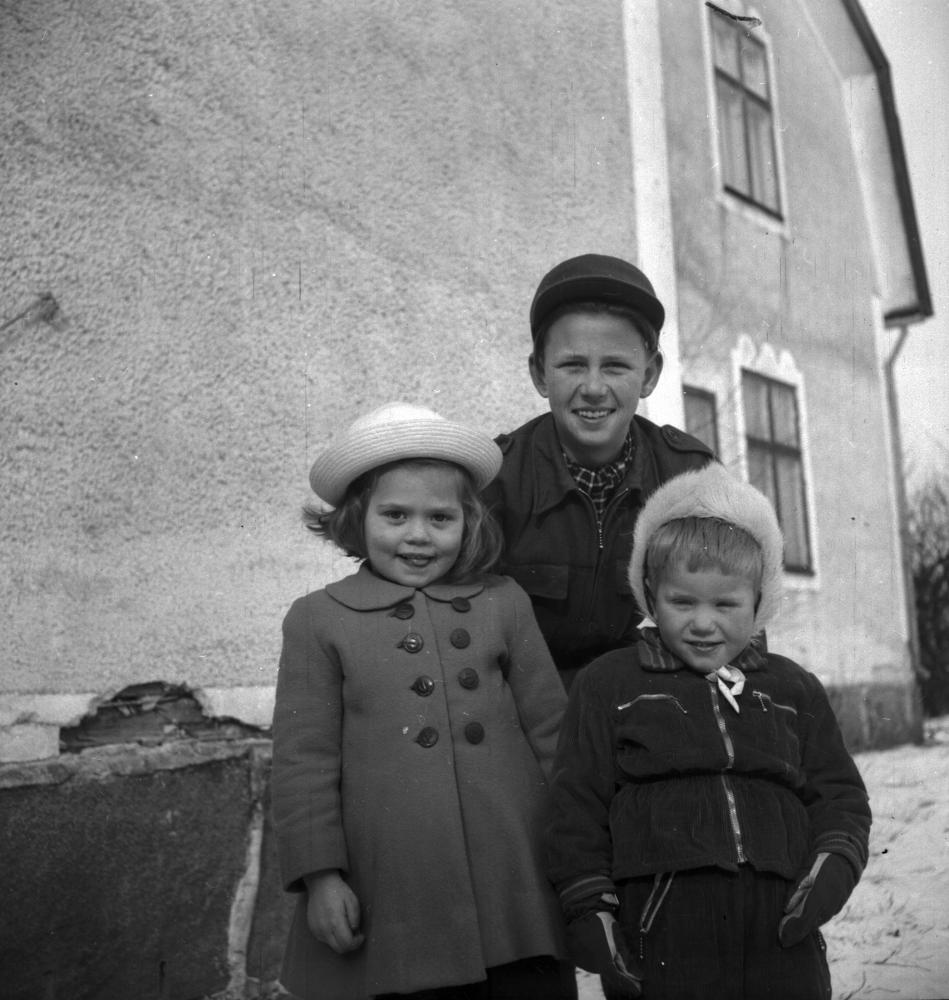 15-årige Bertil Alvesson med flickorna Britt-Marie Nilsson (4 år) och Frans Henrik Tage-Hansen (3 år), som han räddade från att drunkna i Osbysjön 31/1 1947.