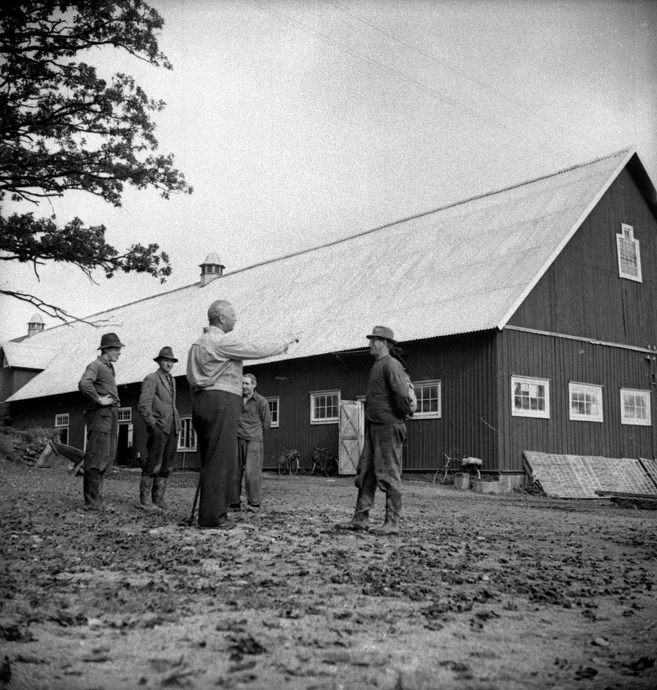 Ryttmästare Hylthén-Cavallius gård, män på gårdsplan.