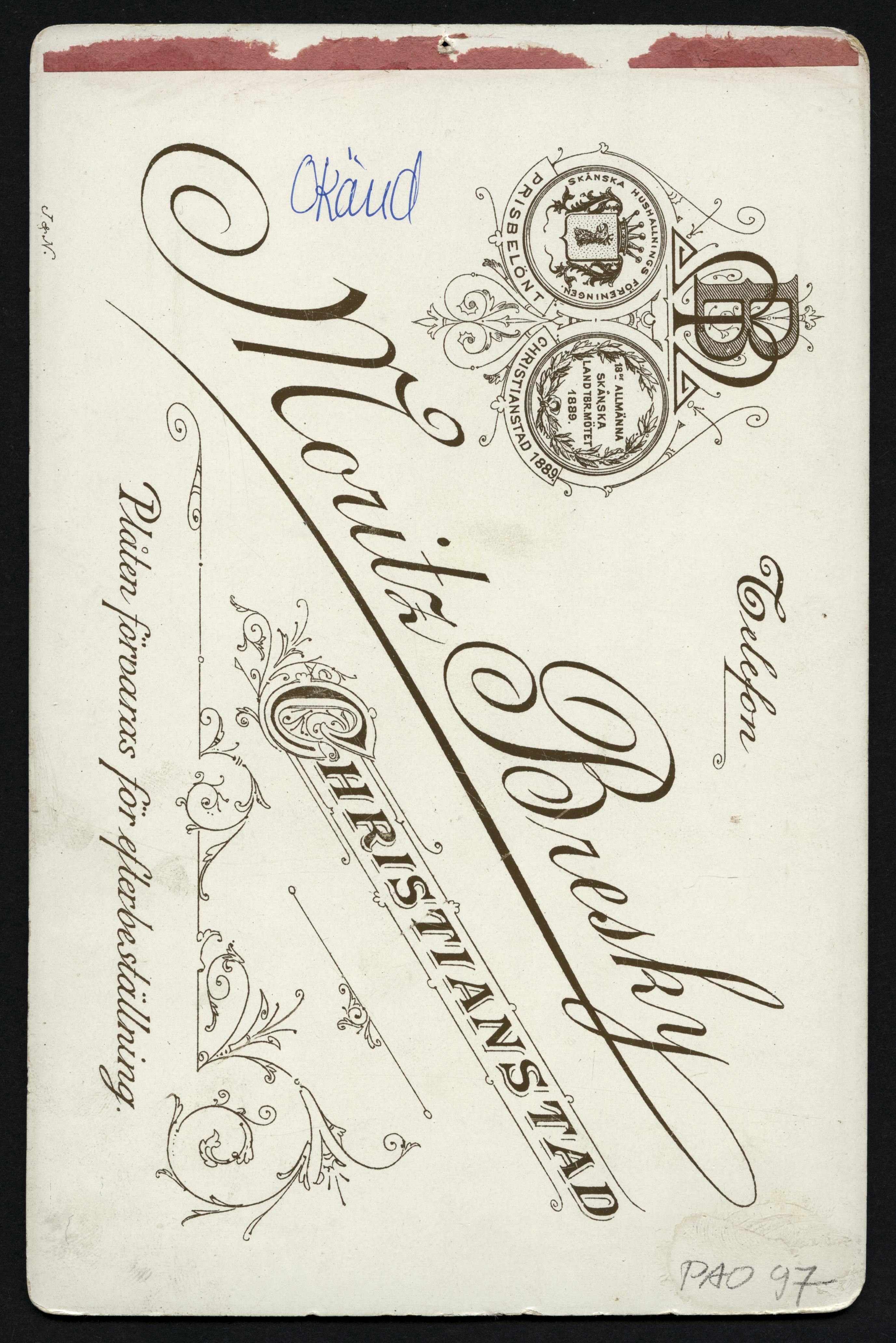 • Visitkortsfotografi. Porträtt av okänd kvinna.