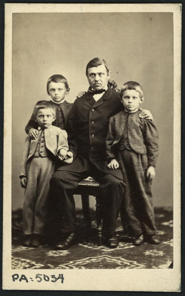 • Visitkortsfotografi. Porträtt av okänd man med sina söner.