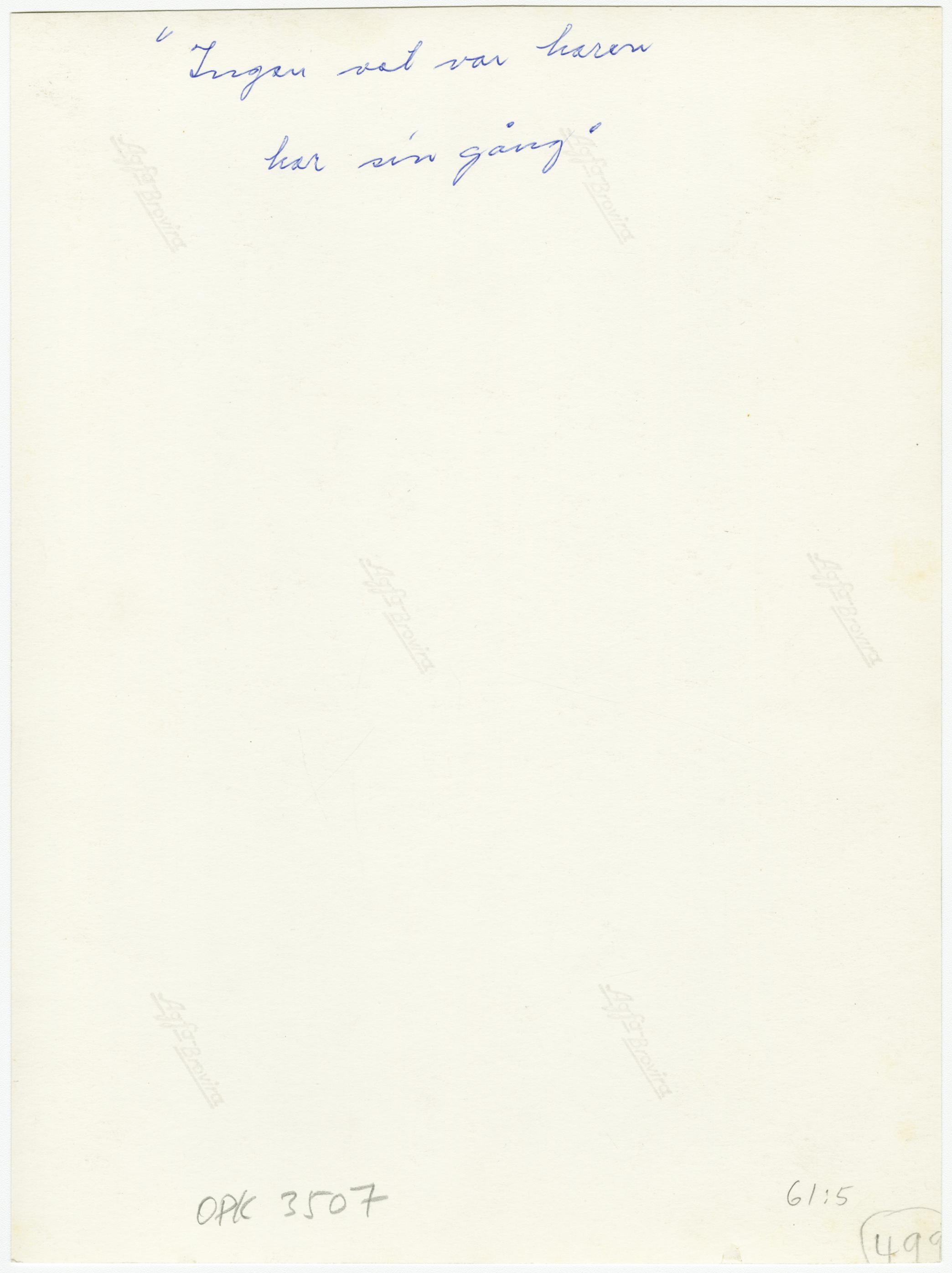 Påskriften lyder: ""Ingen vet var harenhar sin gång"". Nere i högra hörnet står "61:5 499" (499 inom en cirkel).