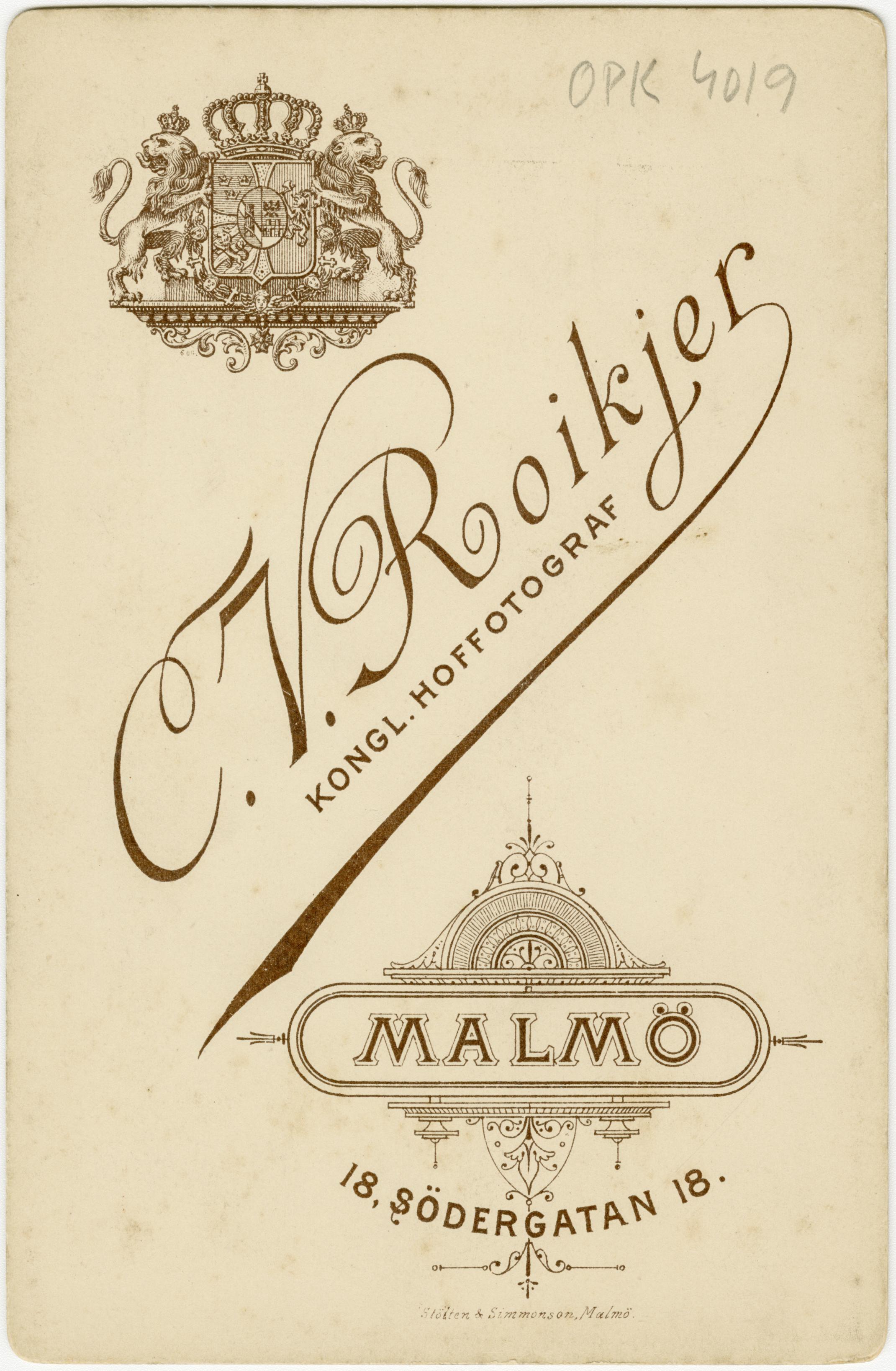 • Fotograferad 1896 i Malmö, Sverige.