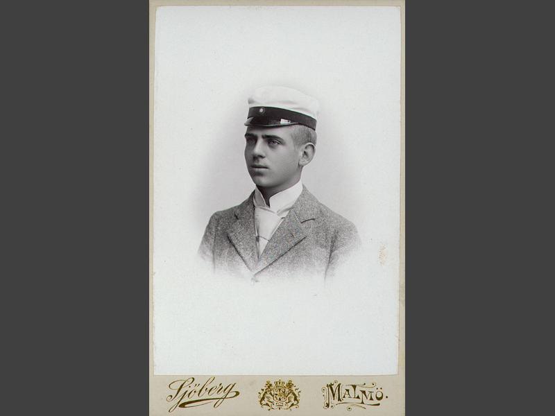 • Visitkortsfotografi. Porträtt av juristen Einar Axell i studentmössa.