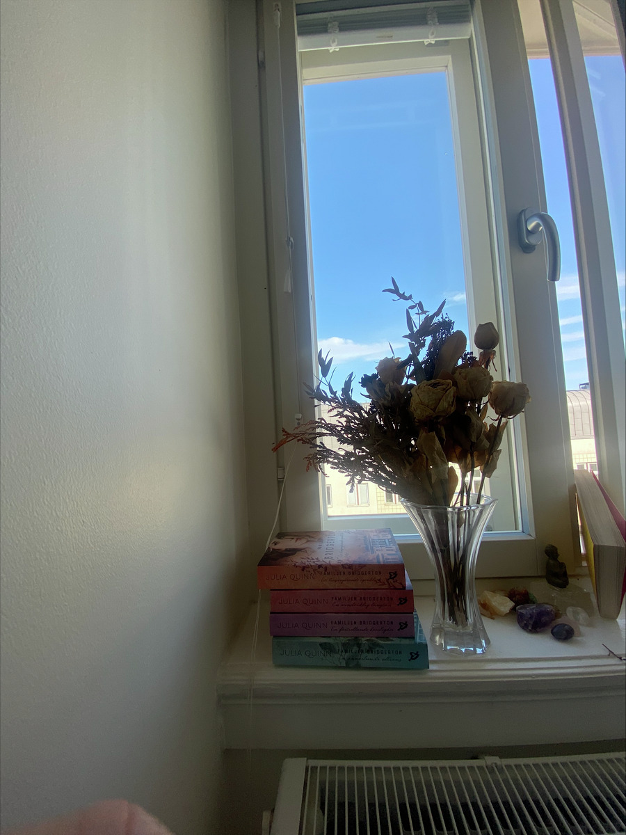 blomvas, ung i sommar, böcker, samling, läsning, samla, bok, läsa, fönsterkarm