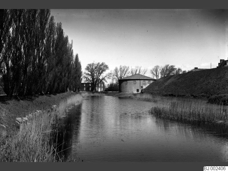 • Malmö. Slottsparken. Kommendanthuset och Malmöhus NV kanontorn i bakgrunden