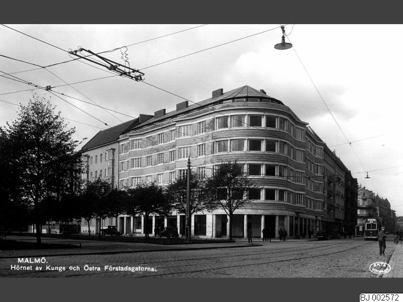 • Hörnet av Kungsgatan och Förstadsgatan med en spårvagn