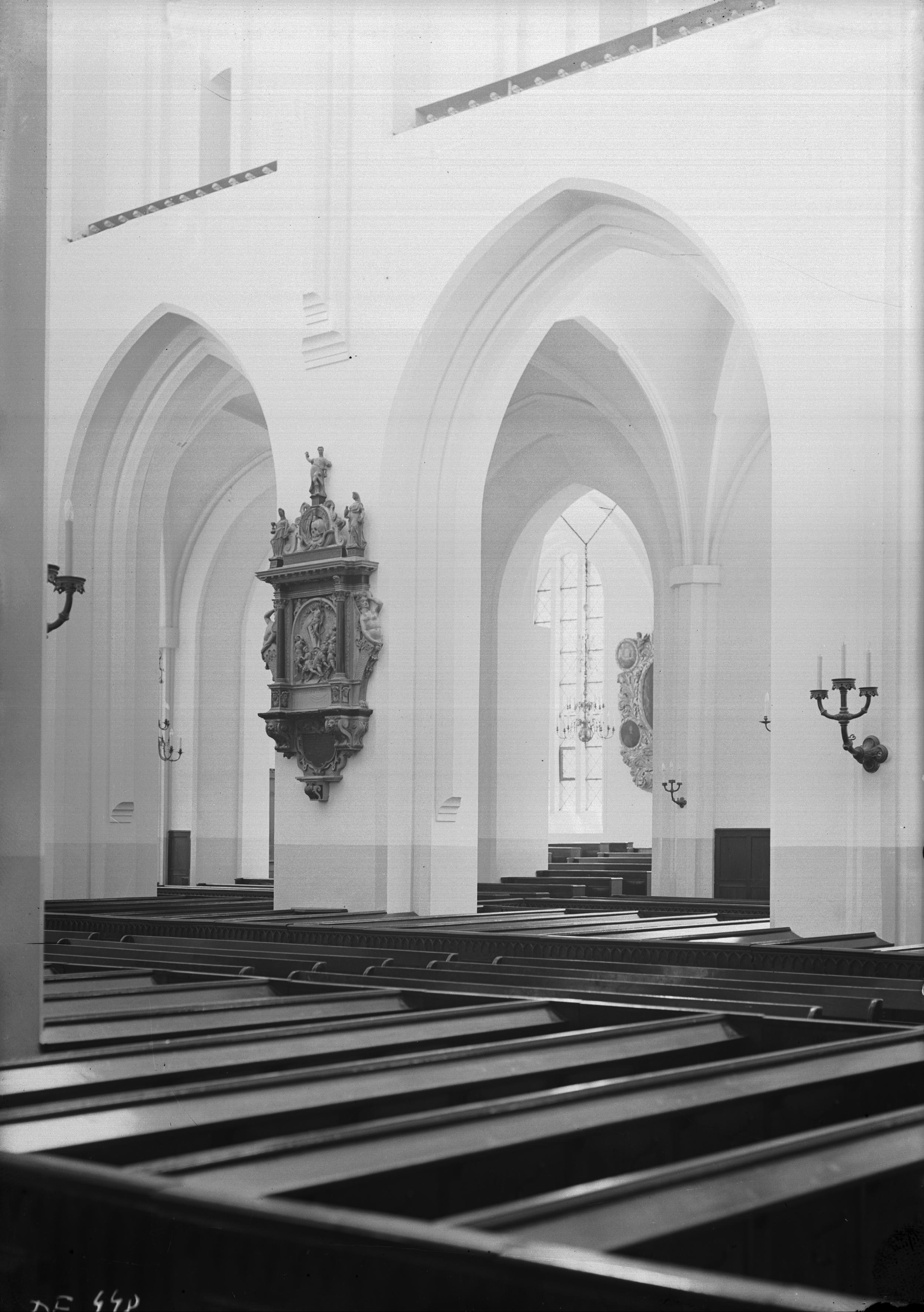 • Interiör från S:t Petri kyrka, del av mittskeppet, 1914