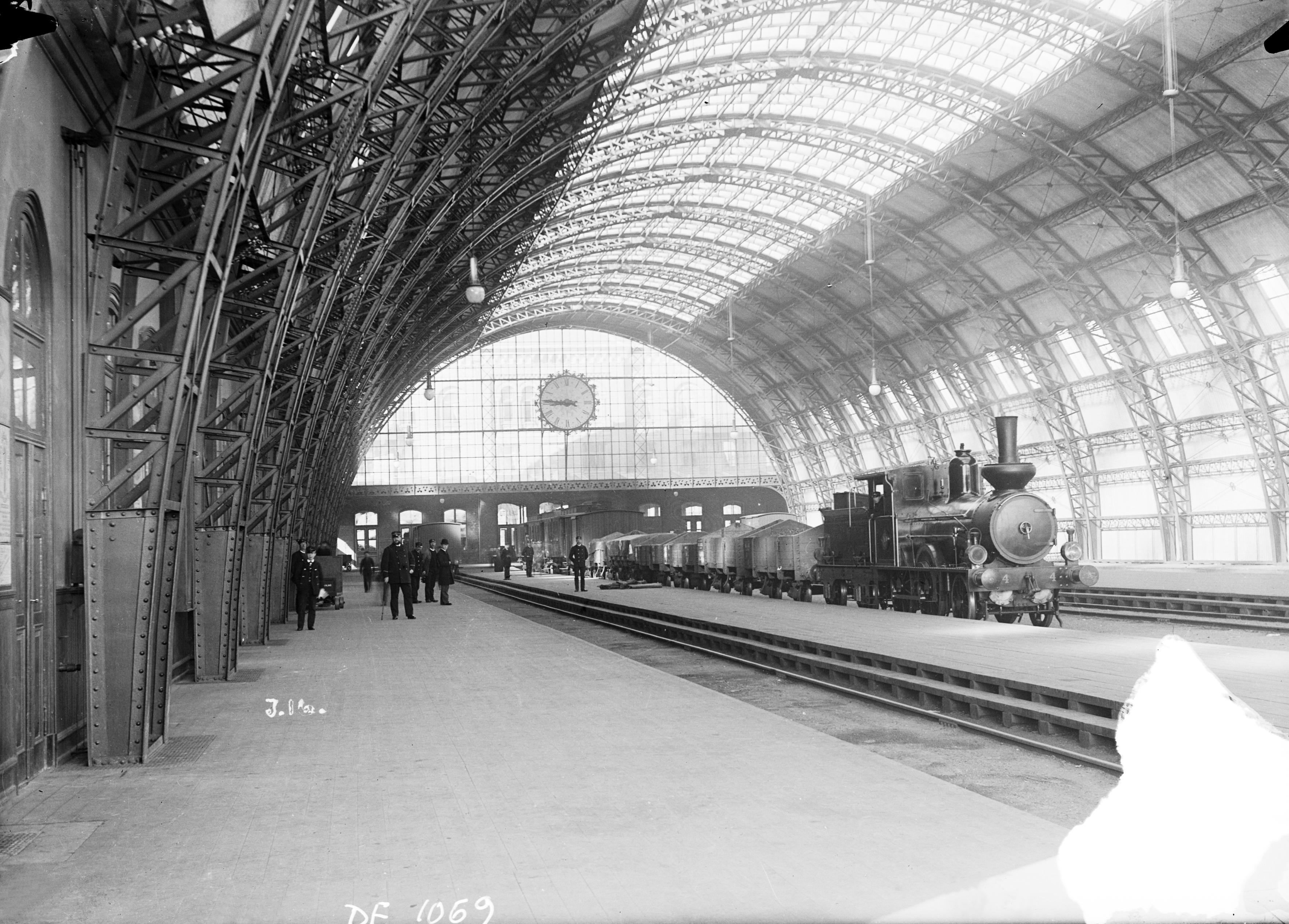 • Interiör med tåg från nya banhallen, 1901