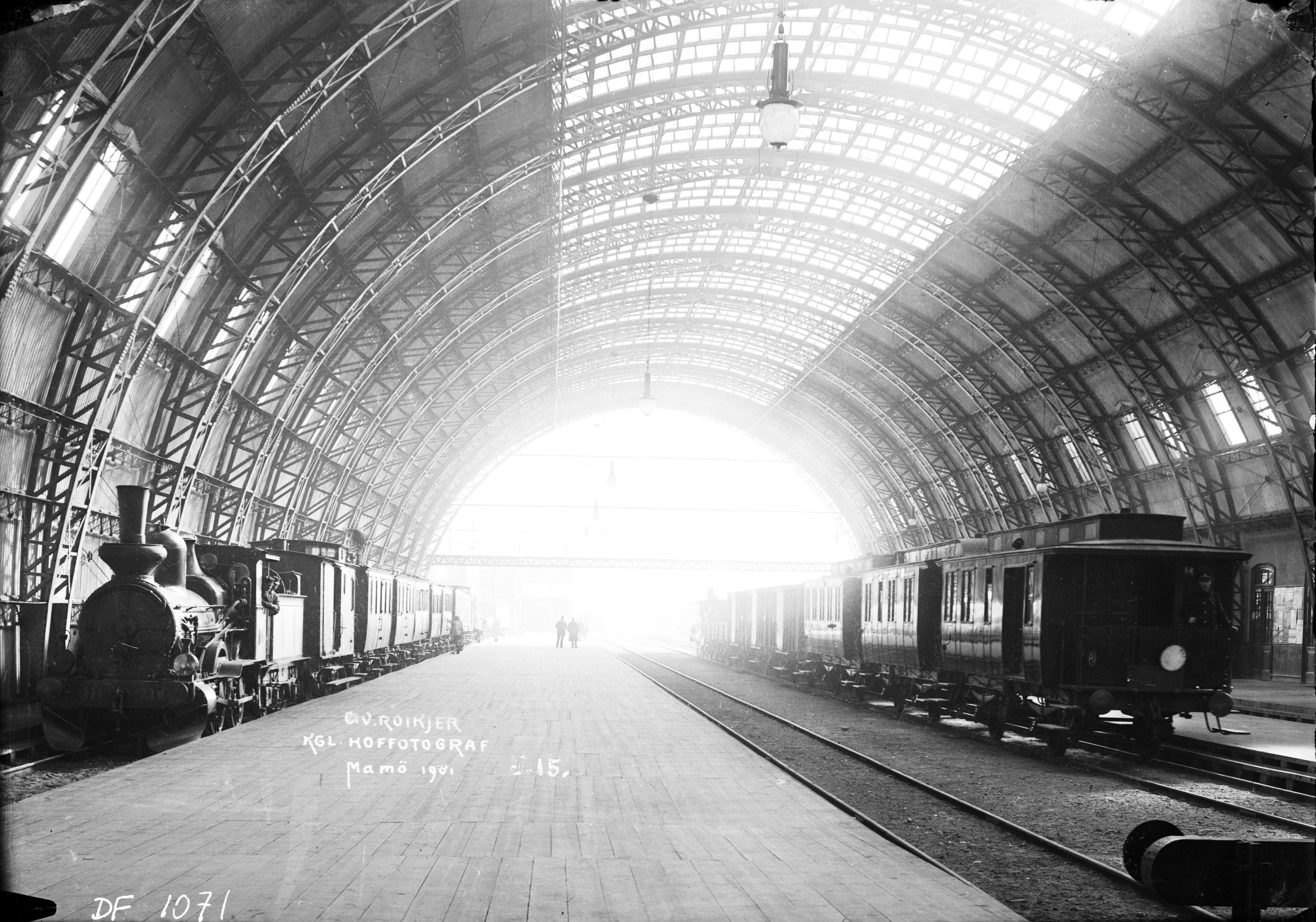 • Interiör med tåg från nya banhallen, 1901