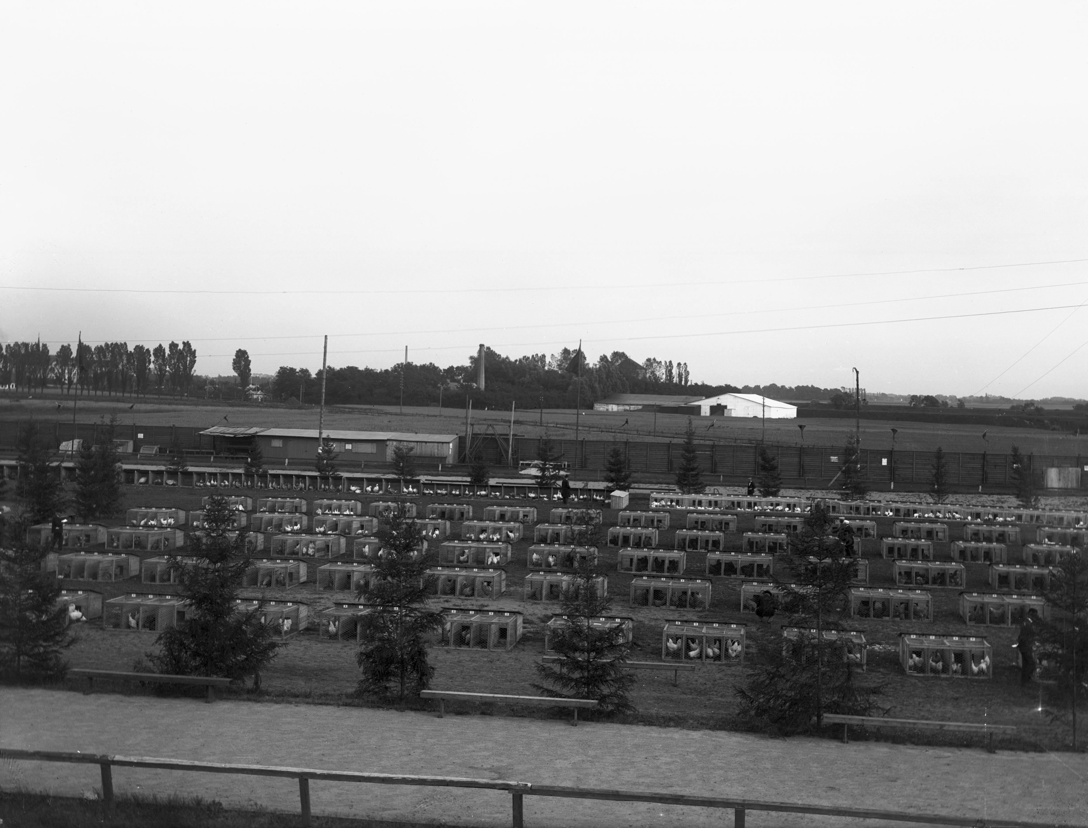• Fjäderfäutställning på Idrottsplatsen 1900. Fågelburar.