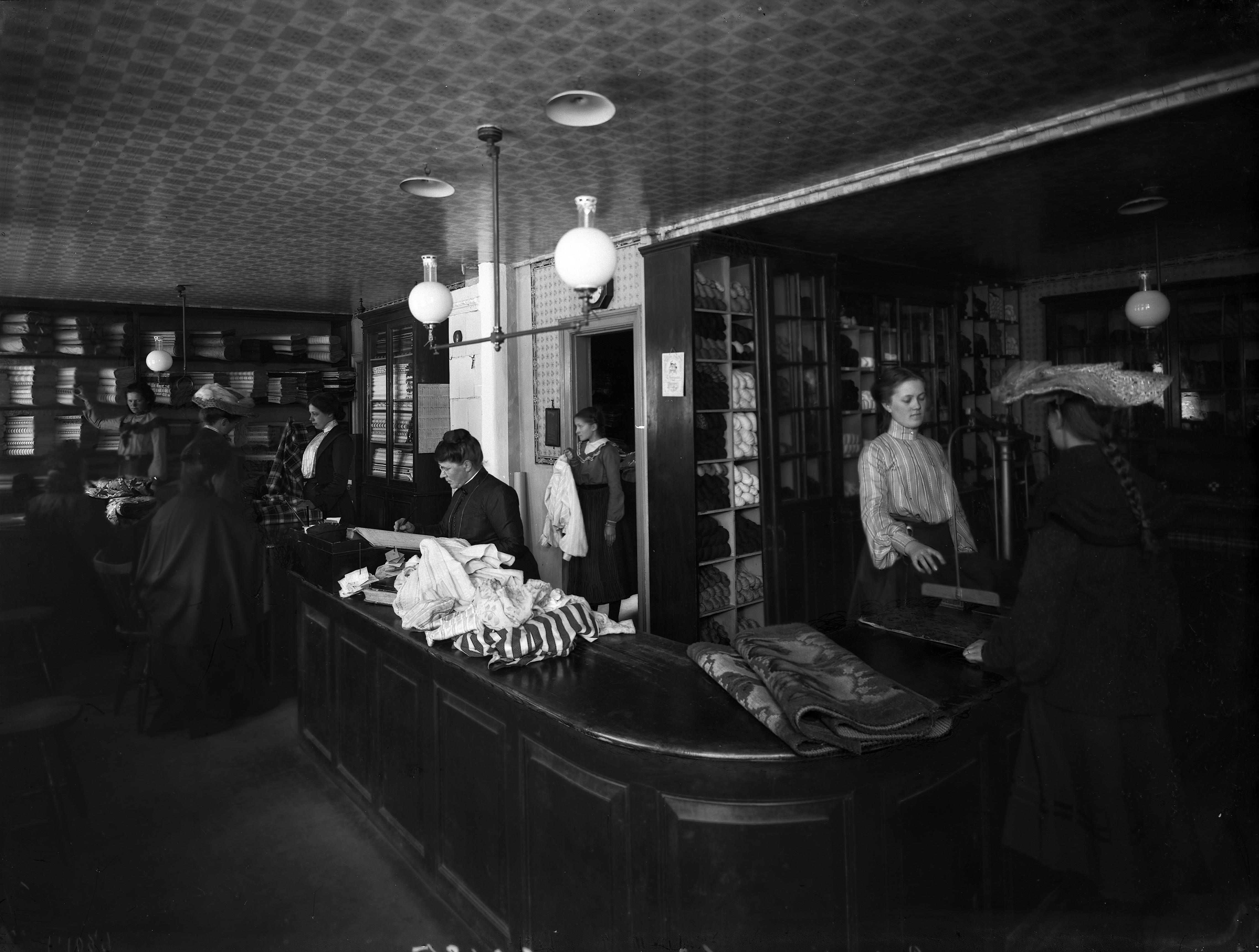 • P.Dahlström, ångfärgeri-& kem. konsttvättomat. Butiksinteriör. Östra Förstadsgatan 12.