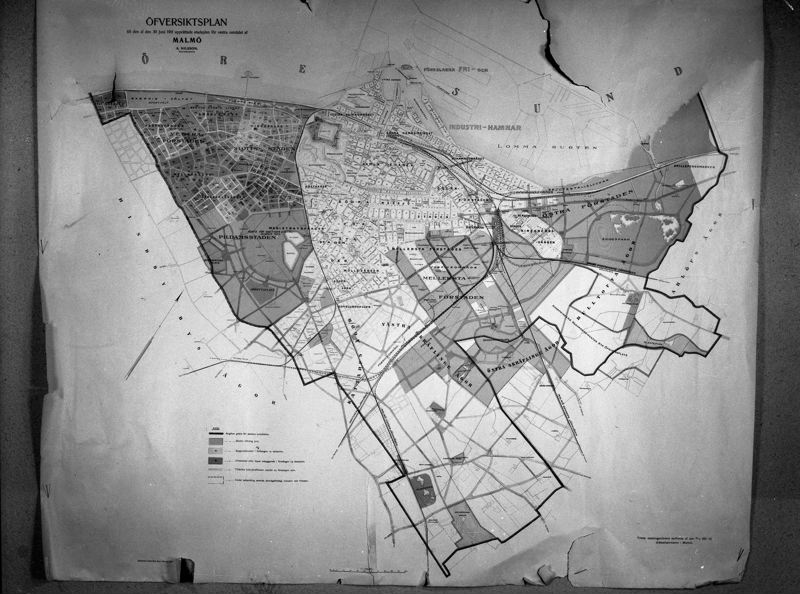 • Öfversiktsplan till den af den 30 juni 1911 upprättade stadsplan för Vestra området af Malmö