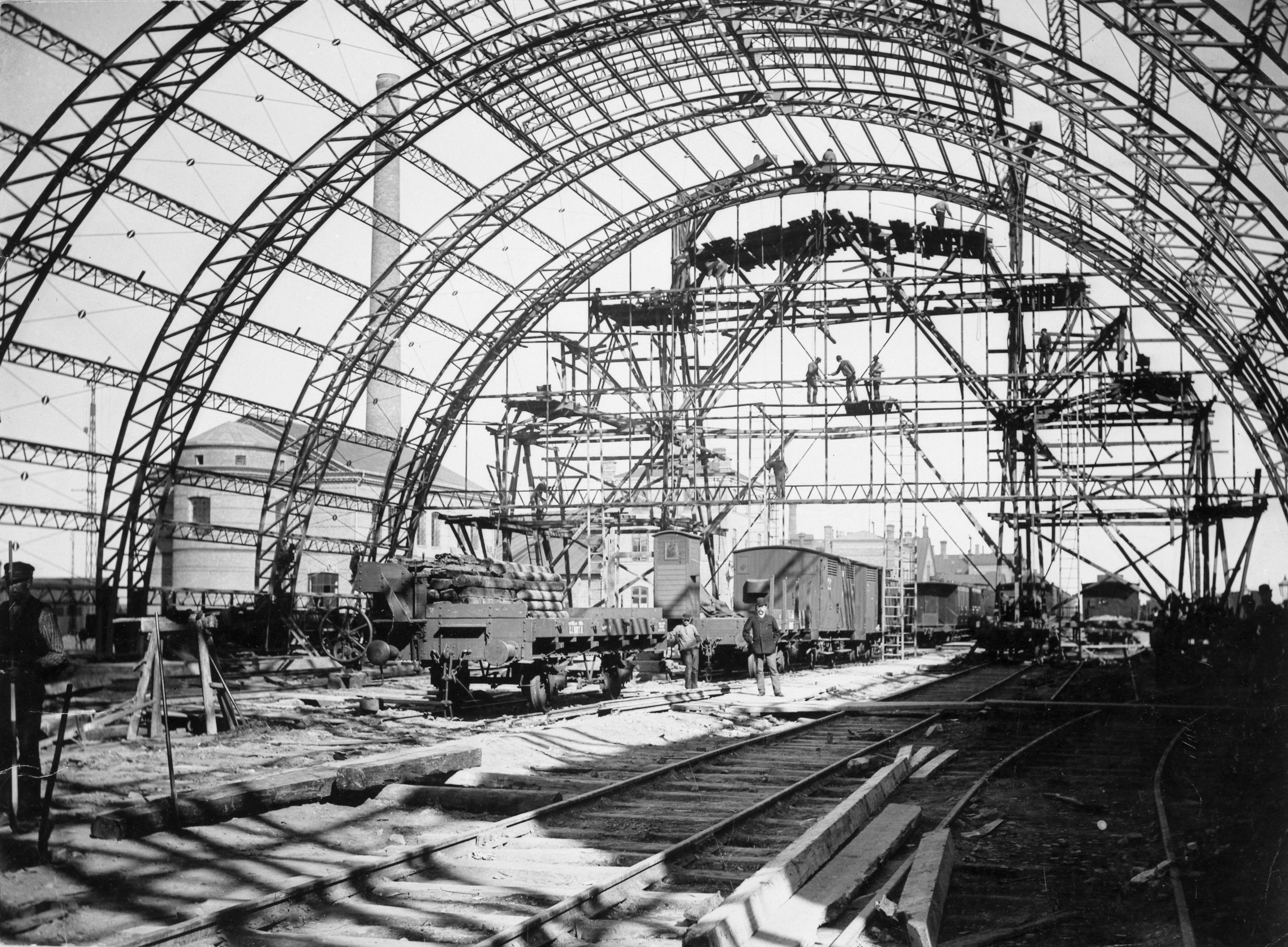 • Järnkonstruktionerna till nya banhallen.