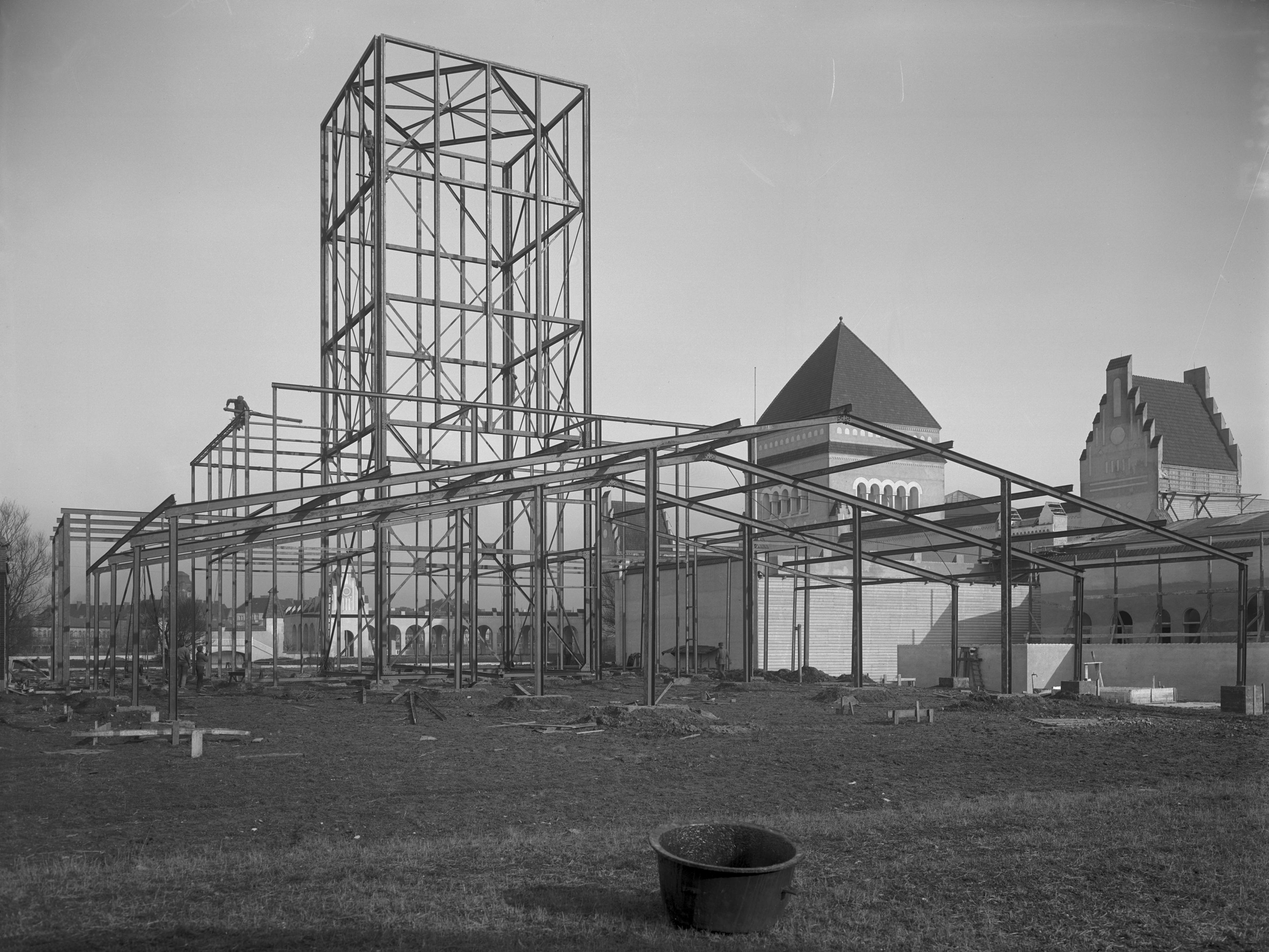 • Byggandet, exteriör Werdandibund 1914-02-28. I bakgrunden bland annat Konsthallen