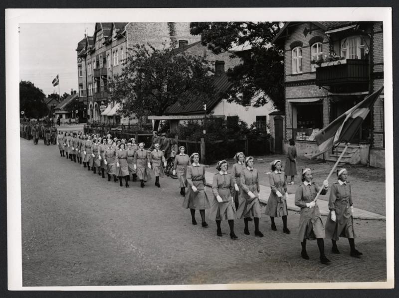 • Hemortsförsvarets dag i Arlöv.Den 5.9.Deltagarna på väg till festplatsen,där uppvisning.ägde rum.