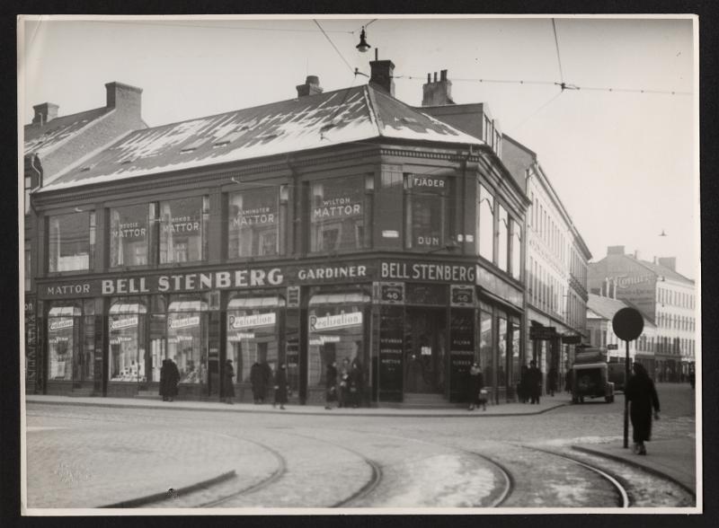 • Hörnhus, Bell Stenberg mattor, gardiner. Gatubild