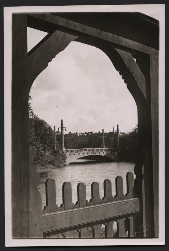 • Slottsparken, kanalparti, Fersens bro i bakgrund. "Konstnärlig bild"