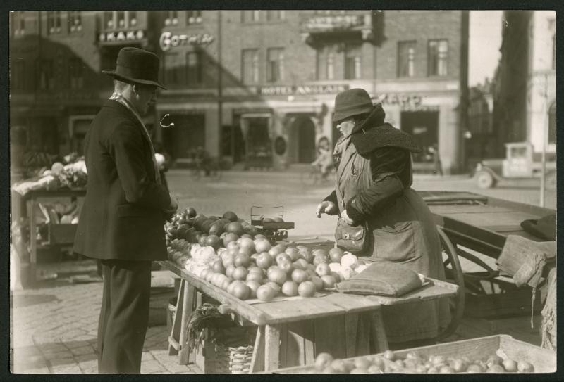 • Stortorget-fruktförsäljning, Isak slaktaregatan, 1920-tal