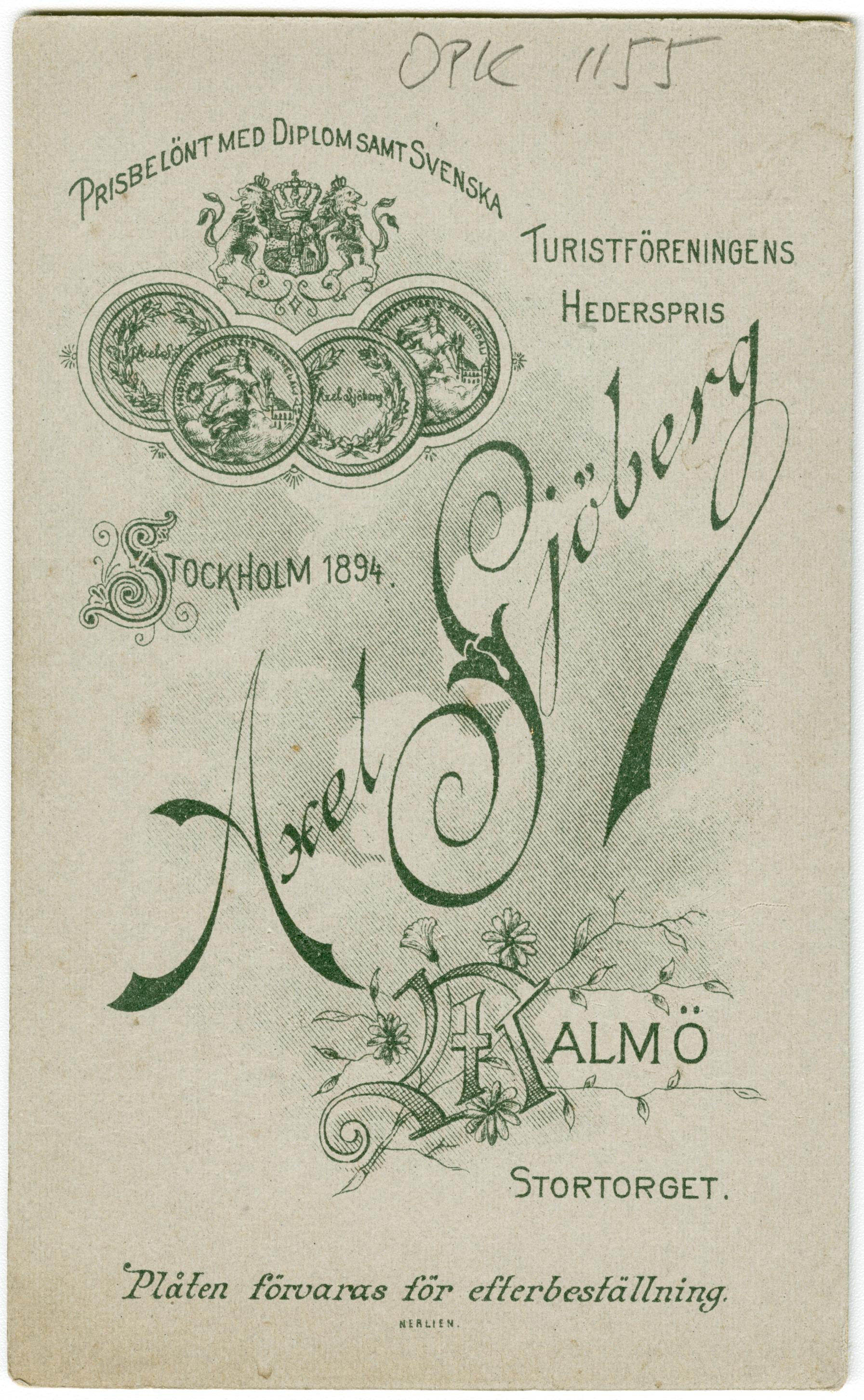 • Baksida av OPK 1155_a. Donation från Gustaf Pålssons sterbhus, Käglinge. Visitkort.