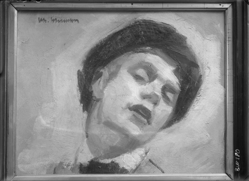 • Kvinnoporträtt, detalj av huvud - olja sign. Joh. Johansson.