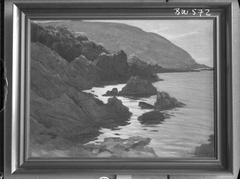• Havsstrand, klippor - olja, sign. Herman Österlund, 1939.