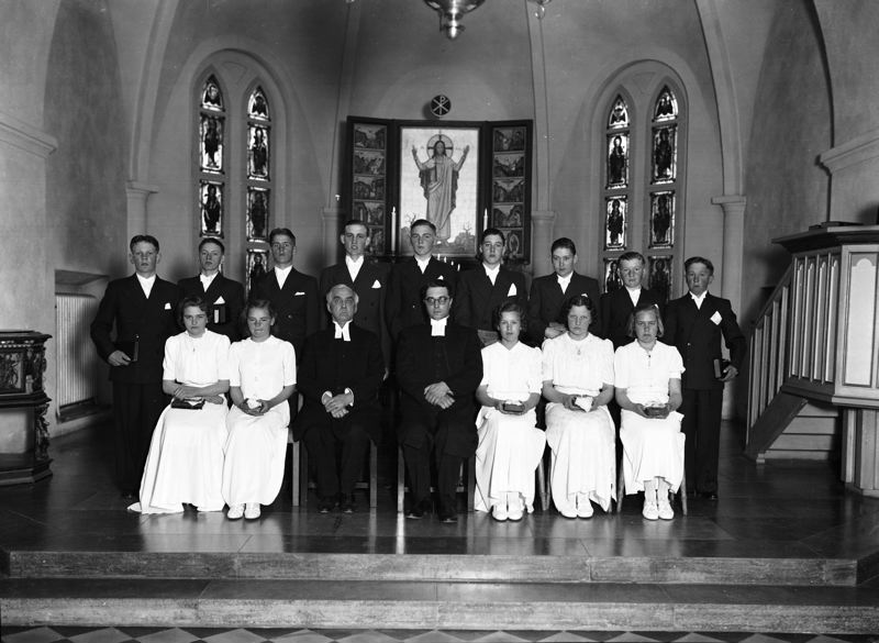 • Kyrkointeriör - konfirmander framför altaret - Södra Sallerup