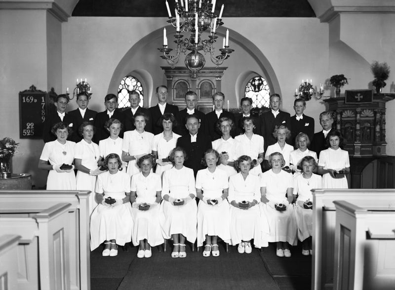 • Kyrkointeriör - konfirmander framför altaret - Veberöd. Samma som HC 001426.